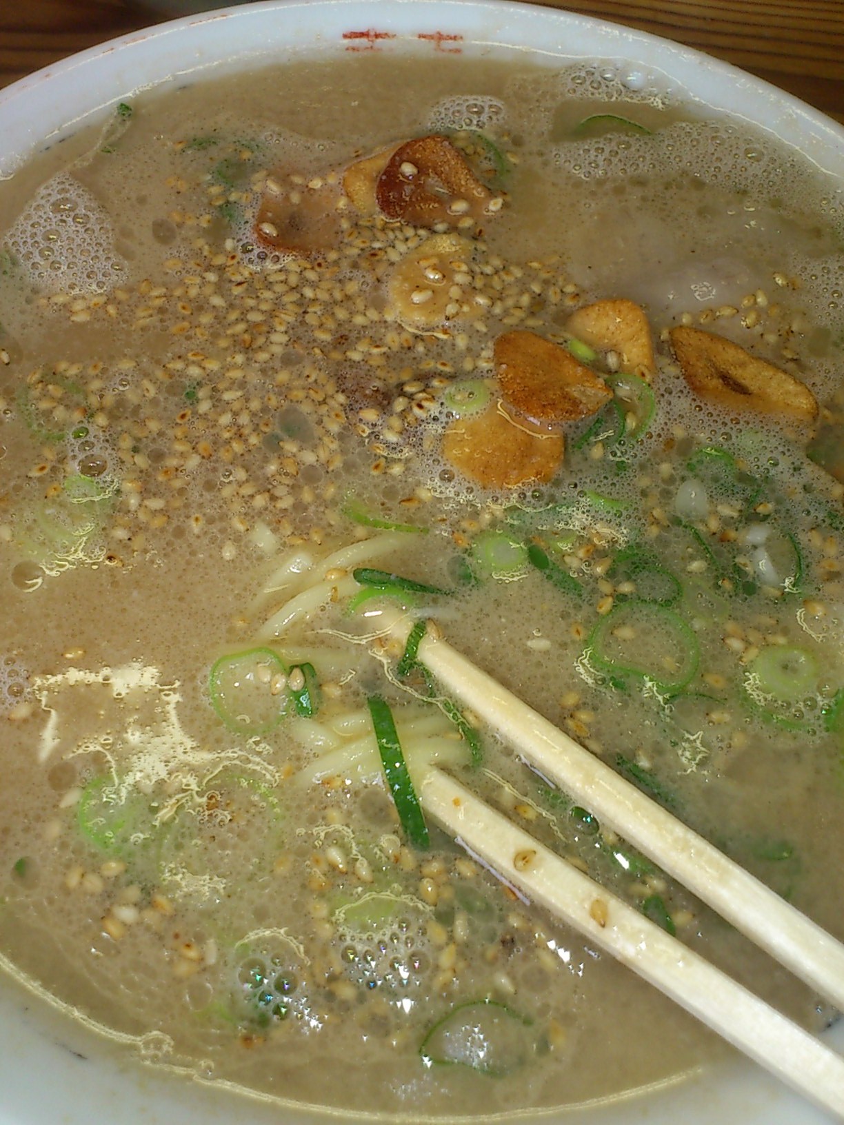 スープは、これぞ豚骨!ってな感じで、またスープの温度もギリギリまで熱くされてるようで、気合が伝わってきます。