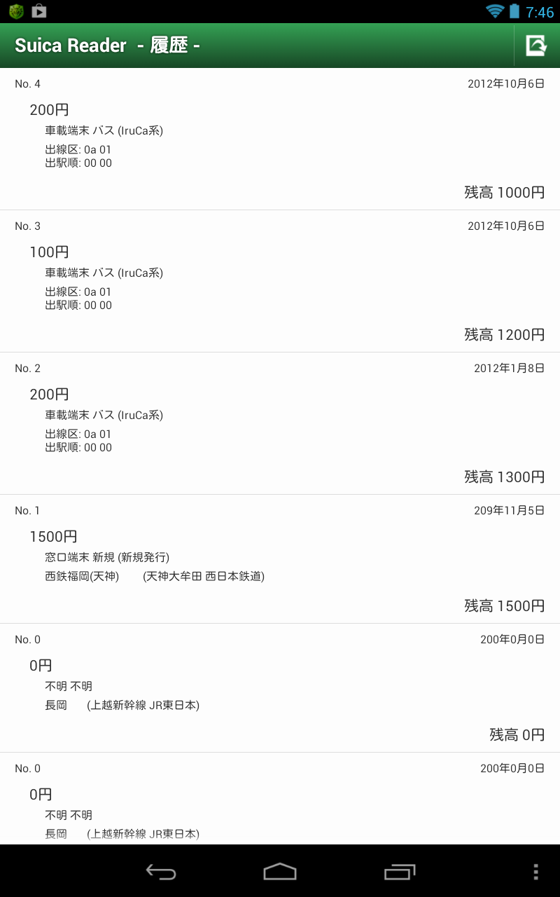 「Suica Reader」ていうアプリをインストールしてみました。