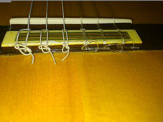ブリッジが多少剥がれていた為、修理に出したら新しい弦に張り替えて頂いて帰ってきました。